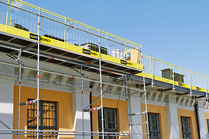 Installed by a qualified person - Scaffolding supports a temporary edge protection system